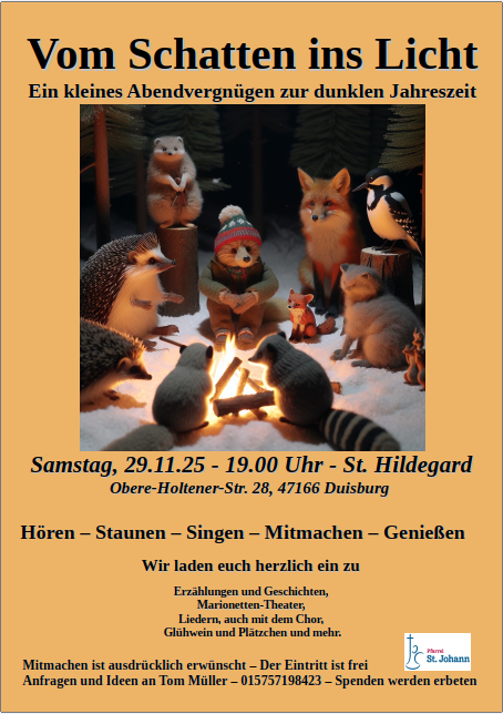 Im Gemeindesaal St. Hildegard kommen wir ab 19.00 Uhr zusammen, um unsere Talente zu zeigen und die der anderen zu bestaunen. Geschichten werden kunstvoll erzählt,